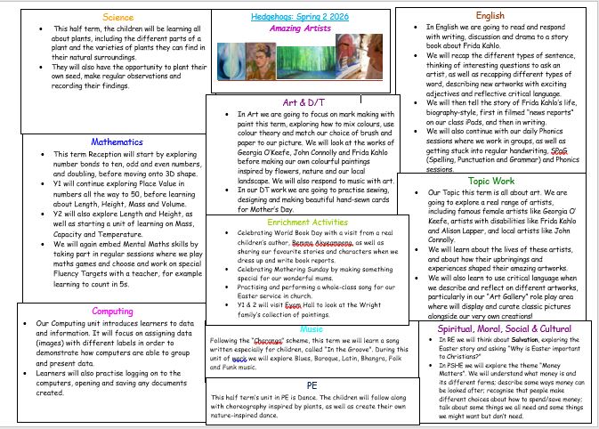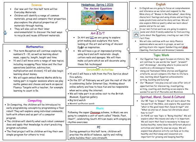 Each half-term, we will upload new spellings and relevant homework, as well as a copy of the topic we